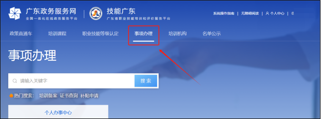 (网址:https://ggfw.hrss.gd.gov.cn/OUPX/)